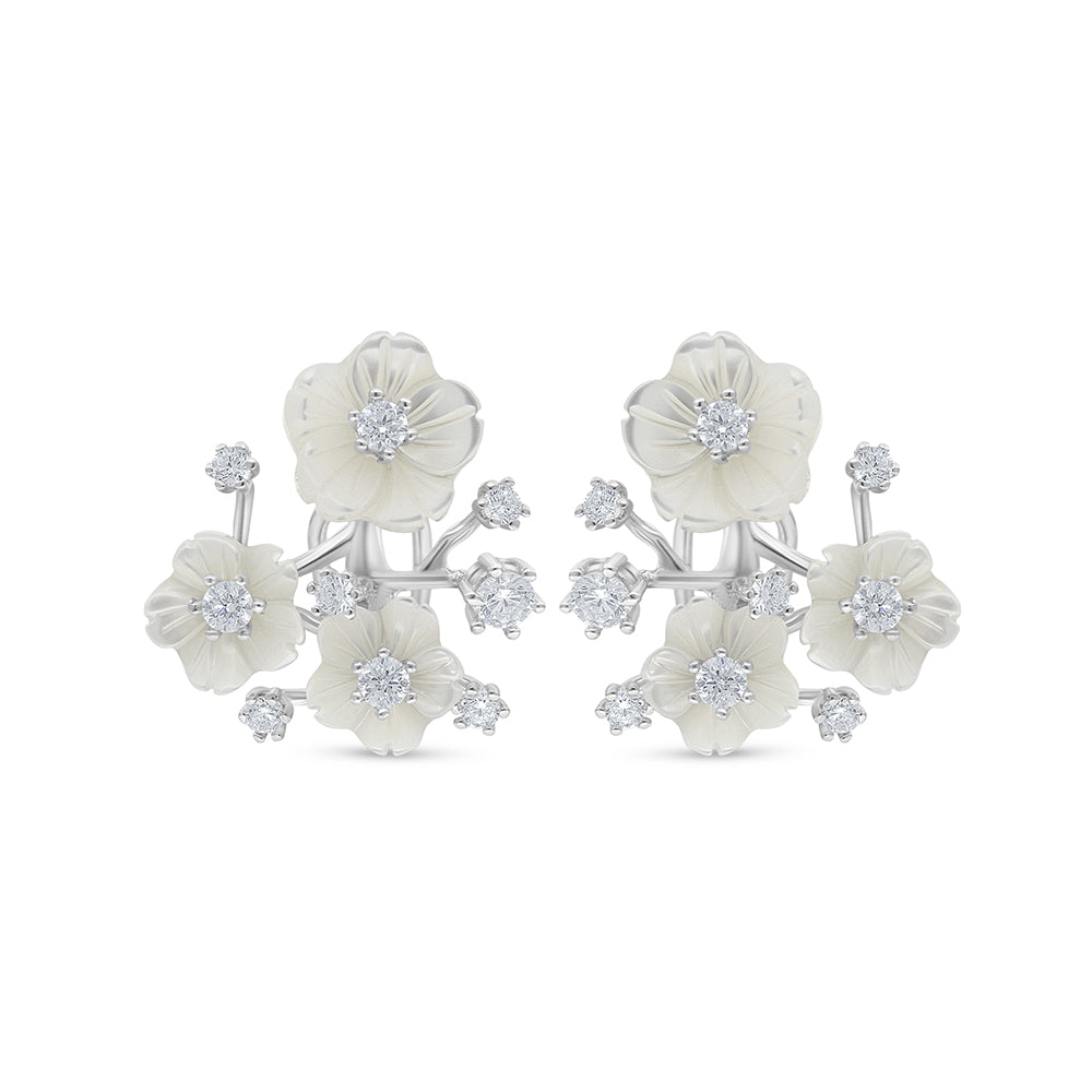اقراط من الفضة الخالصة عيار 925 مطلية روديوم مرصعة صدف ابيض و فص ابيض