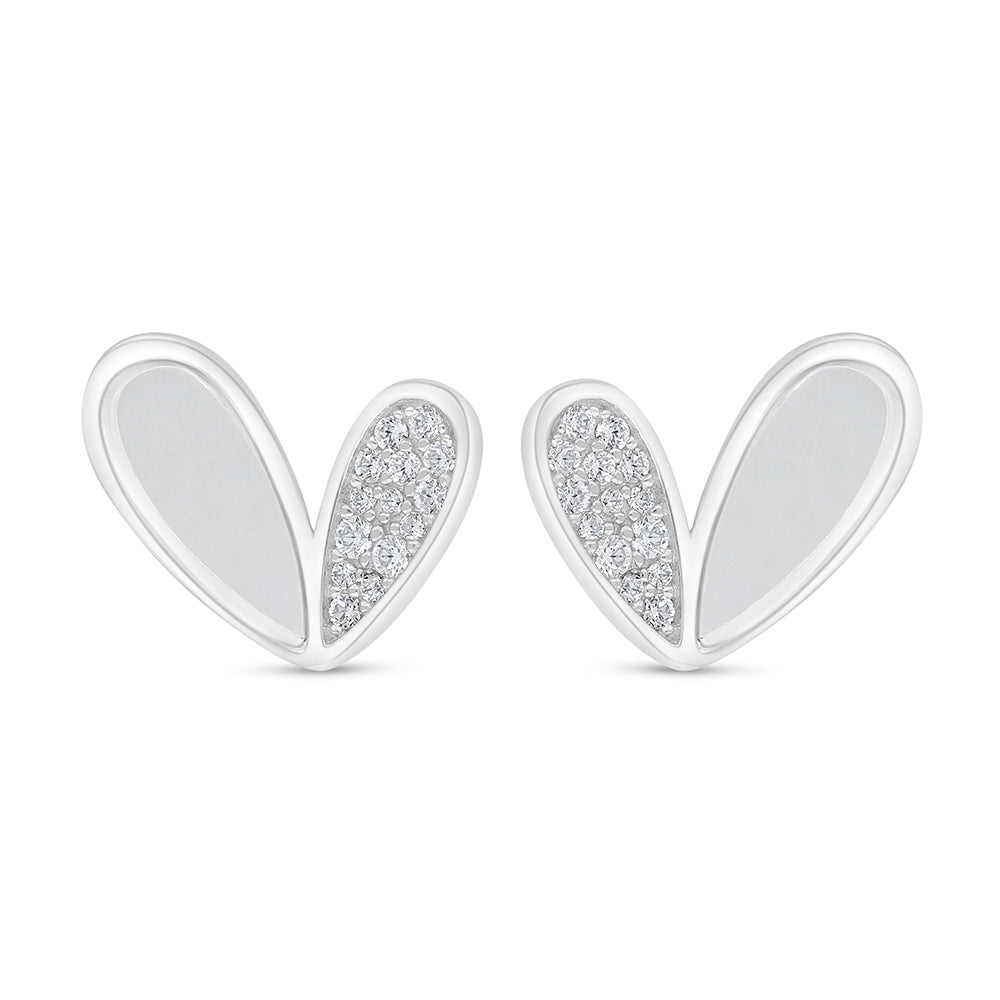 اقراط من الفضة الخالصة عيار 925 مطلي روديوم صدف ابيض و فص ابيض