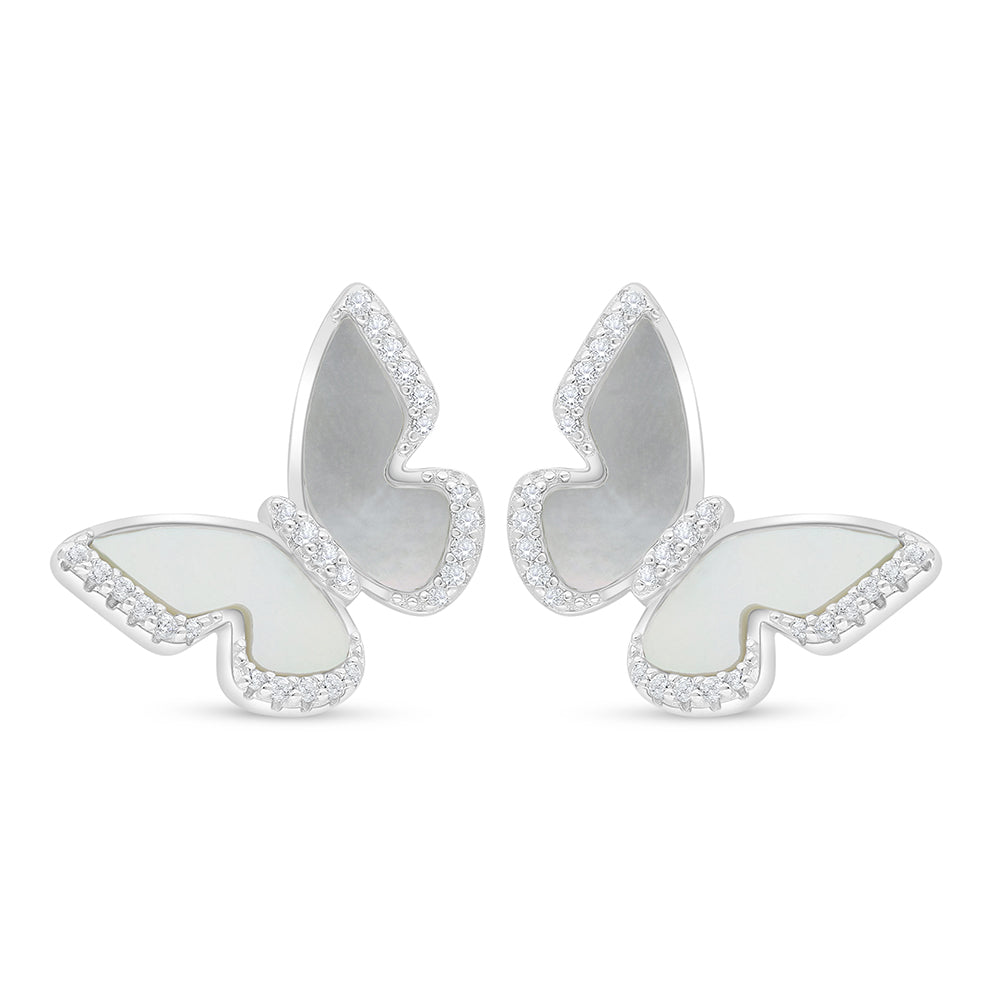 اقراط من الفضة الخالصة عيار 925 مطلية روديوم مرصعة صدف ابيض و فص ابيض