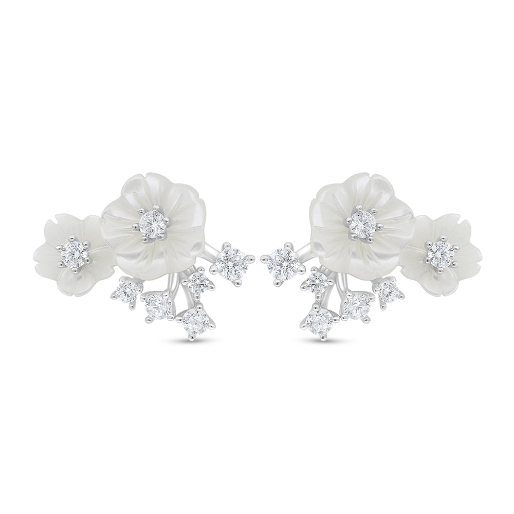 اقراط من الفضة الخالصة عيار 925 مطلية روديوم مرصعة صدف ابيض و فص ابيض