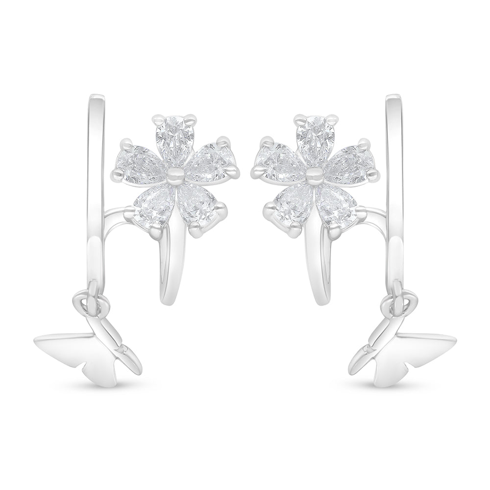 اقراط من الفضة الخالصة عيار 925 مطلي روديوم مرصع فص ابيض