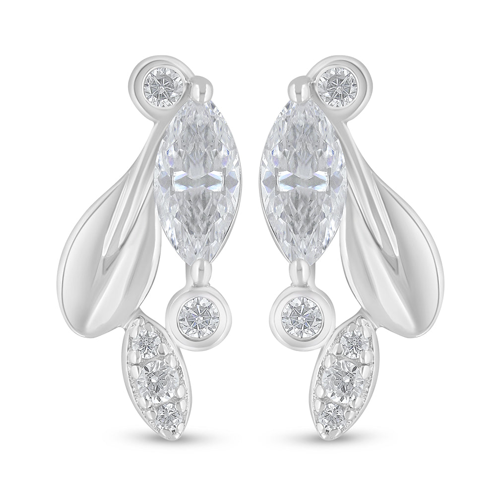 اقراط من الفضة الخالصة عيار 925 مطلي روديوم مرصع فص ابيض