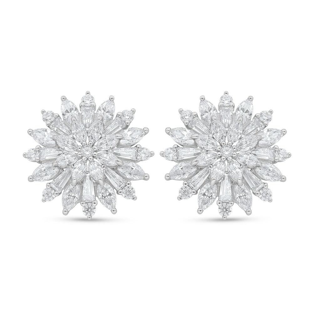 اقراط من الفضة الخالصة عيار 925 مطلي روديوم مرصع فص ابيض