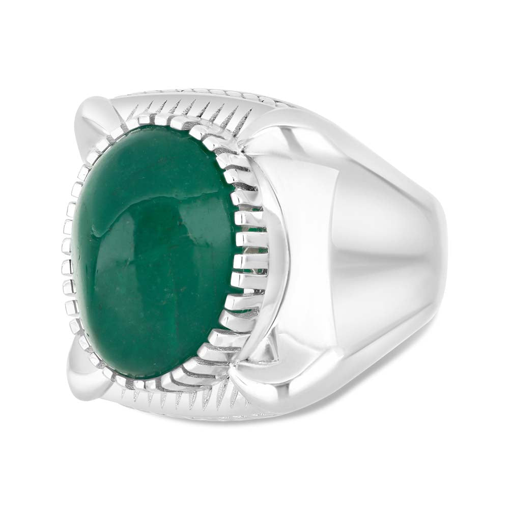 خاتم رجالي عيار 925 مطلي روديوم مرصع بحجر الزمرد الطبيعي