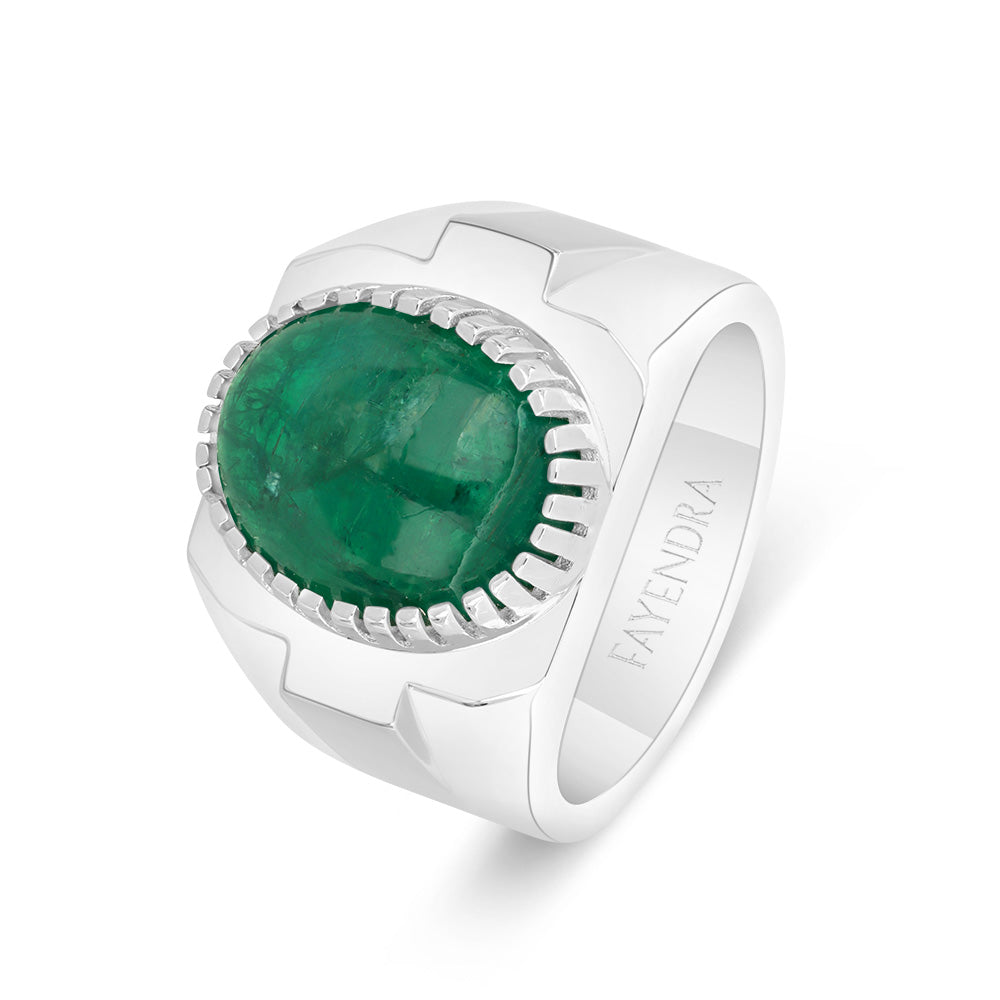 خاتم رجالي عيار 925 مطلي روديوم مرصع بحجر الزمرد الطبيعي