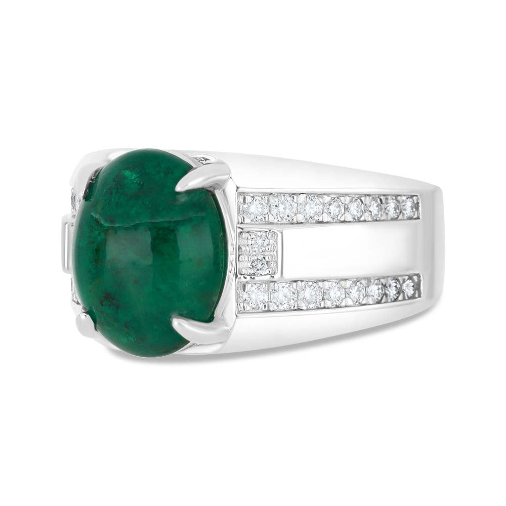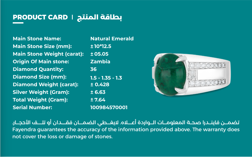 خاتم رجالي عيار 925 مطلي روديوم مرصع بحجر الزمرد الطبيعي و الالماس الطبيعي سي في دي جودة في في اس