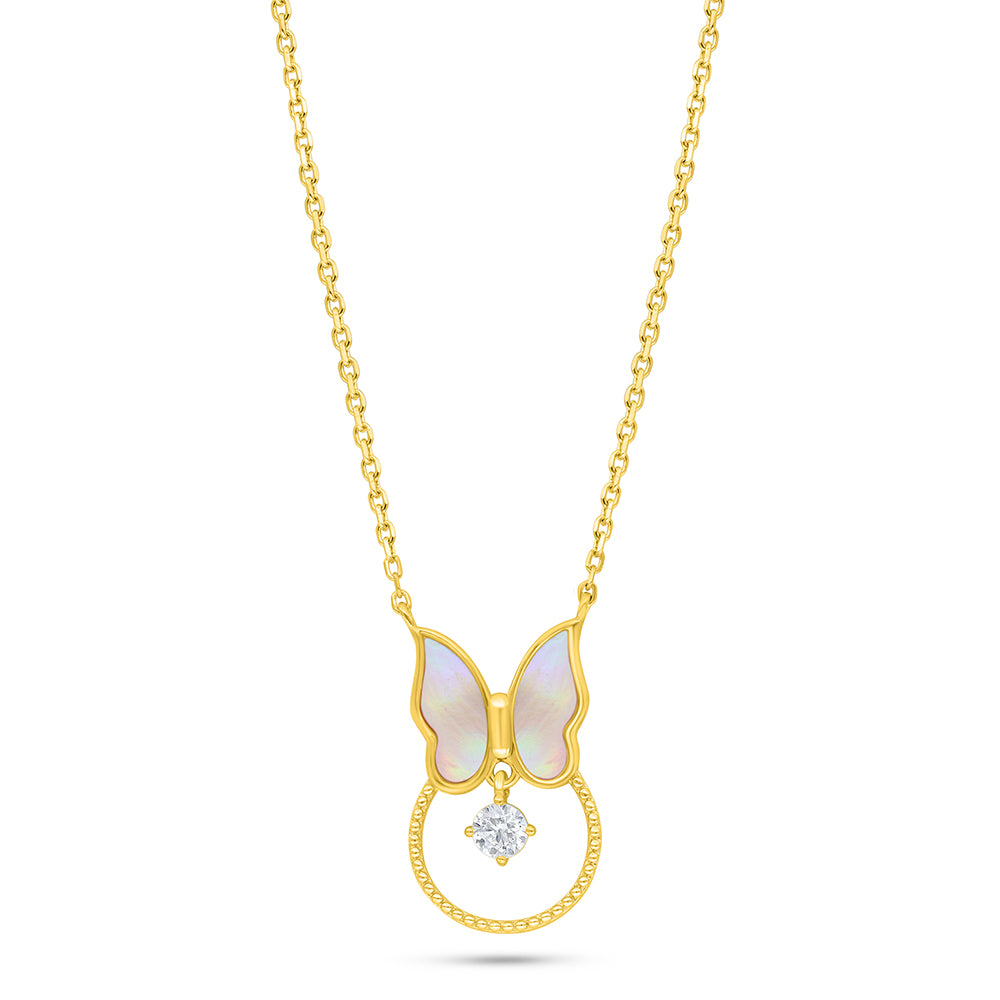 عقد من الفضة الخالصة عيار 925 مطلي ذهبي صدف وردي و فص ابيض
