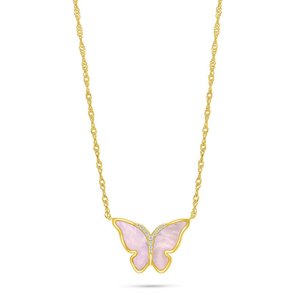عقد من الفضة الخالصة عيار 925 مطلي ذهبي مرصع صدف وردي و فص ابيض