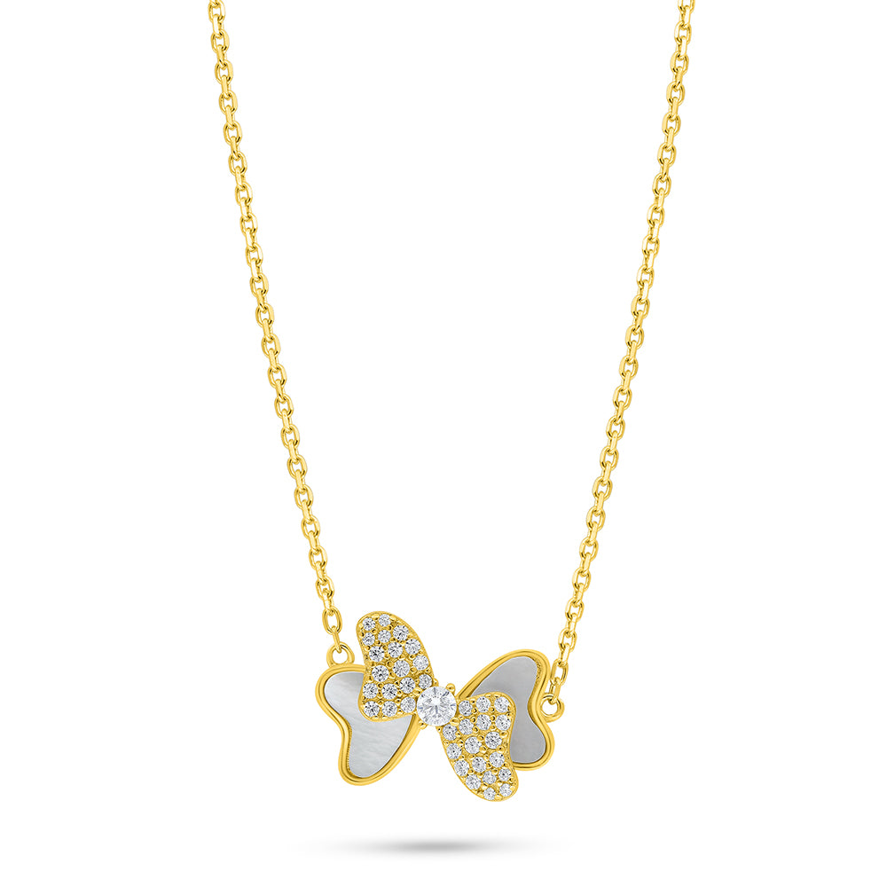 عقد من الفضة الخالصة عيار 925 مطلي ذهبي مرصع صدف ابيض و فص ابيض