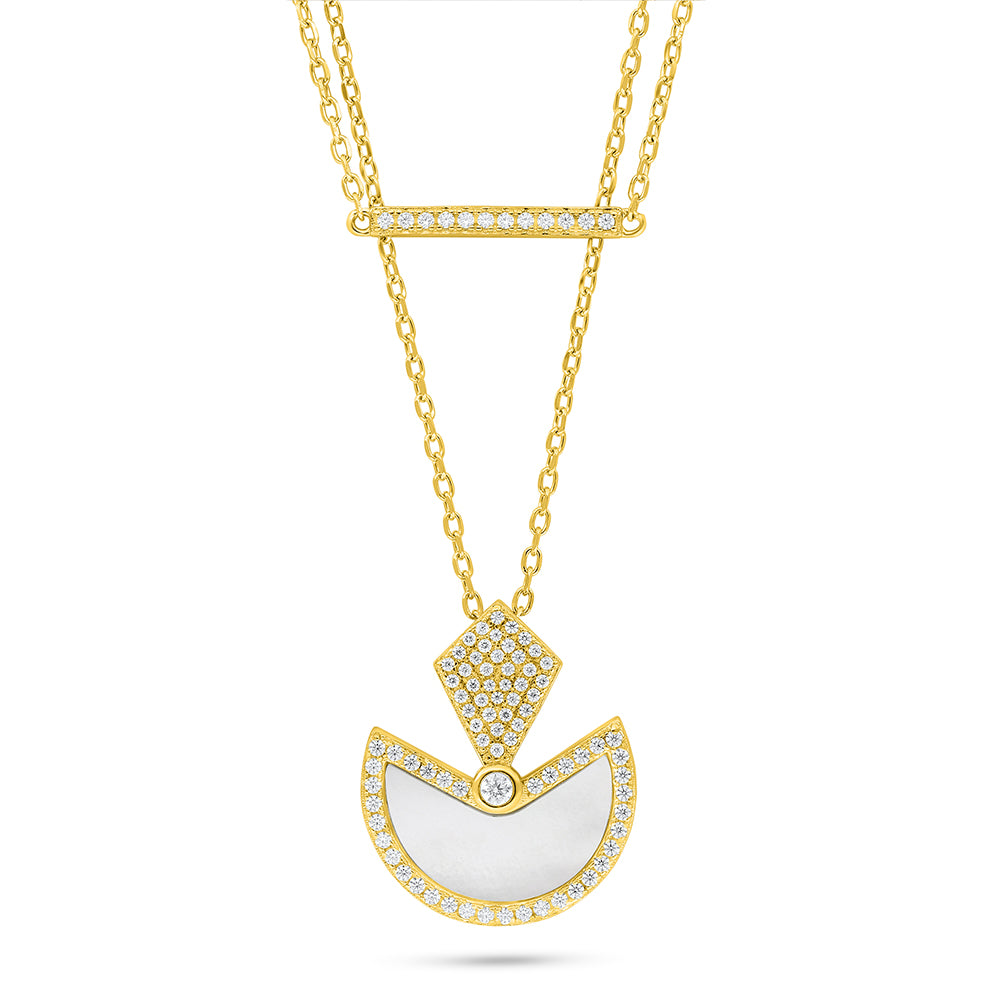 عقد من الفضة الخالصة عيار 925 مطلي ذهبي مرصع صدف ابيض و فص ابيض