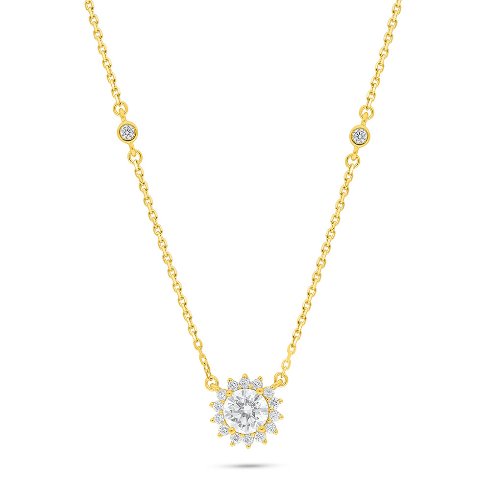 عقد من الفضة الخالصة عيار 925 مطلي ذهبي مرصع فص ابيض