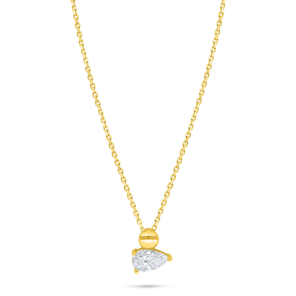 عقد من الفضة الخالصة عيار 925 مطلي ذهبي مرصع فص ابيض