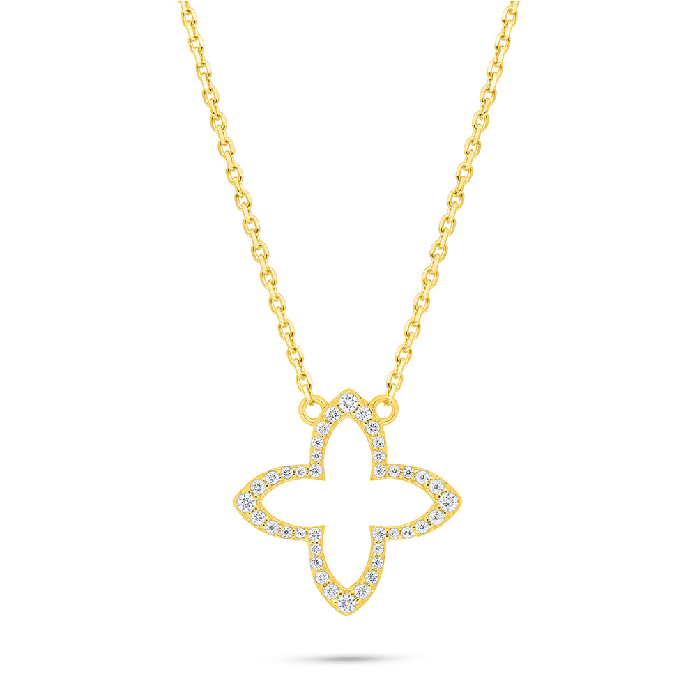 عقد من الفضة الخالصة عيار 925 مطلي ذهبي مرصع فص ابيض
