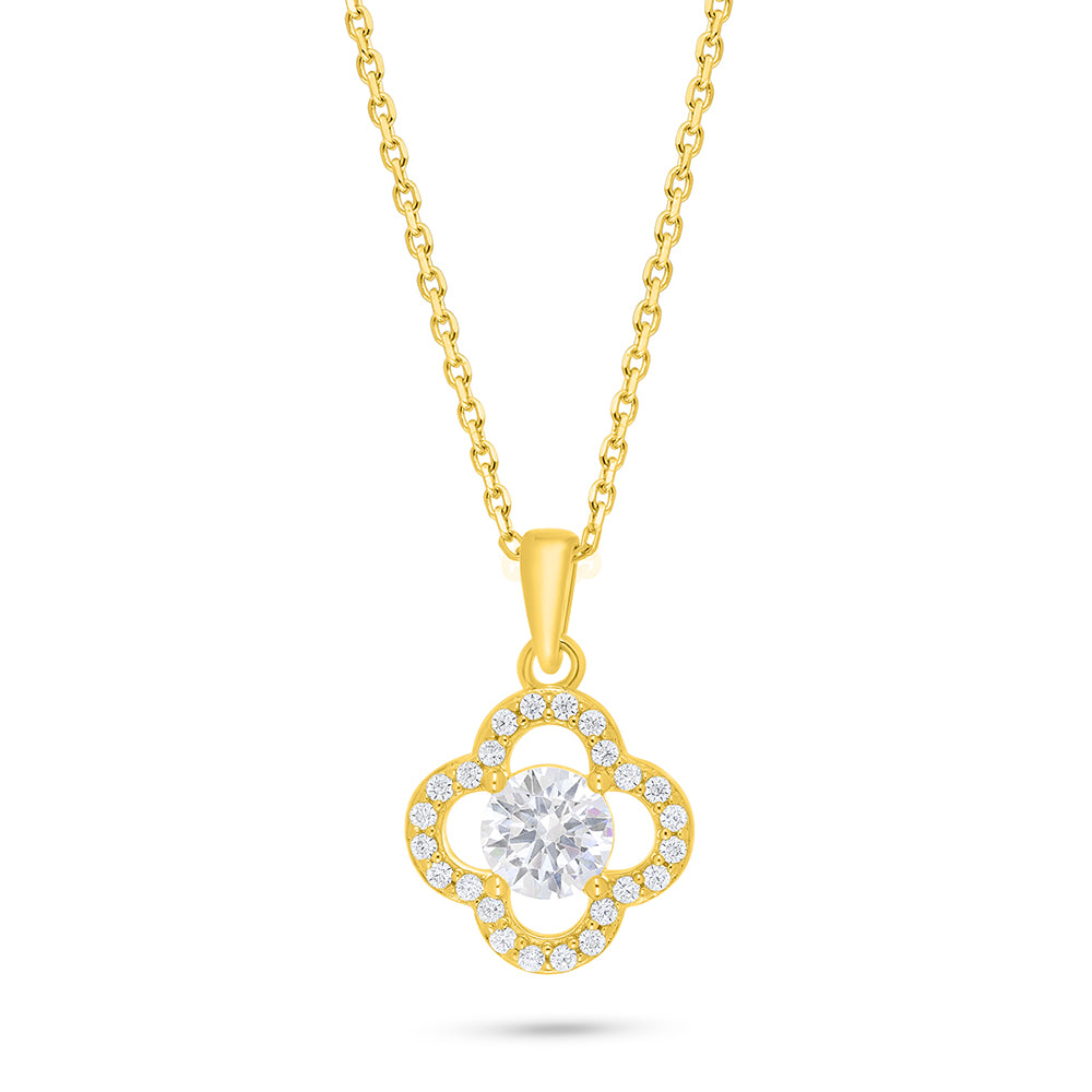 عقد من الفضة الخالصة عيار 925 مطلي ذهبي مرصع فص ابيض