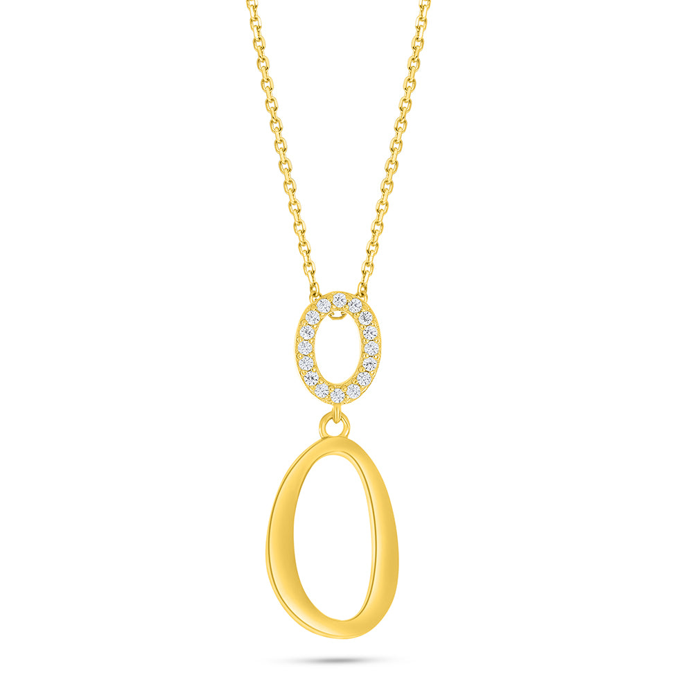 عقد من الفضة الخالصة عيار 925 مطلي روديوم و ذهبي مرصع فص ابيض