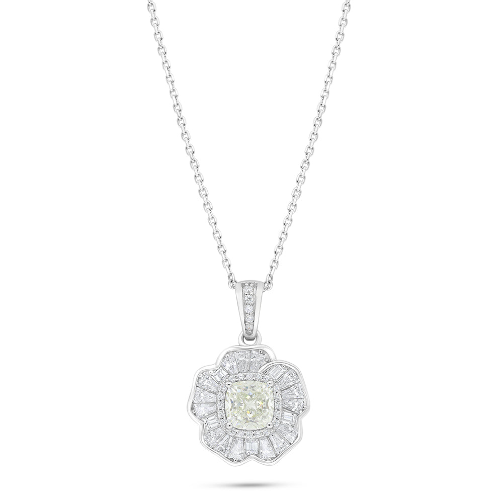 عقد من الفضة الخالصة عيار 925 مطلي روديوم مرصع الزركون الكناري الالماسي و فص ابيض