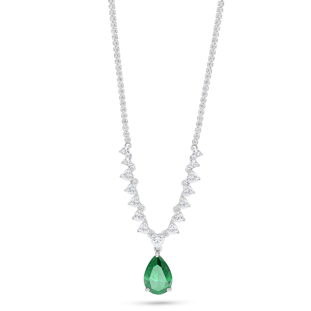 عقد من الفضة الخالصة عيار 925 مطلي روديوم مرصع زركون زمردي و فص ابيض