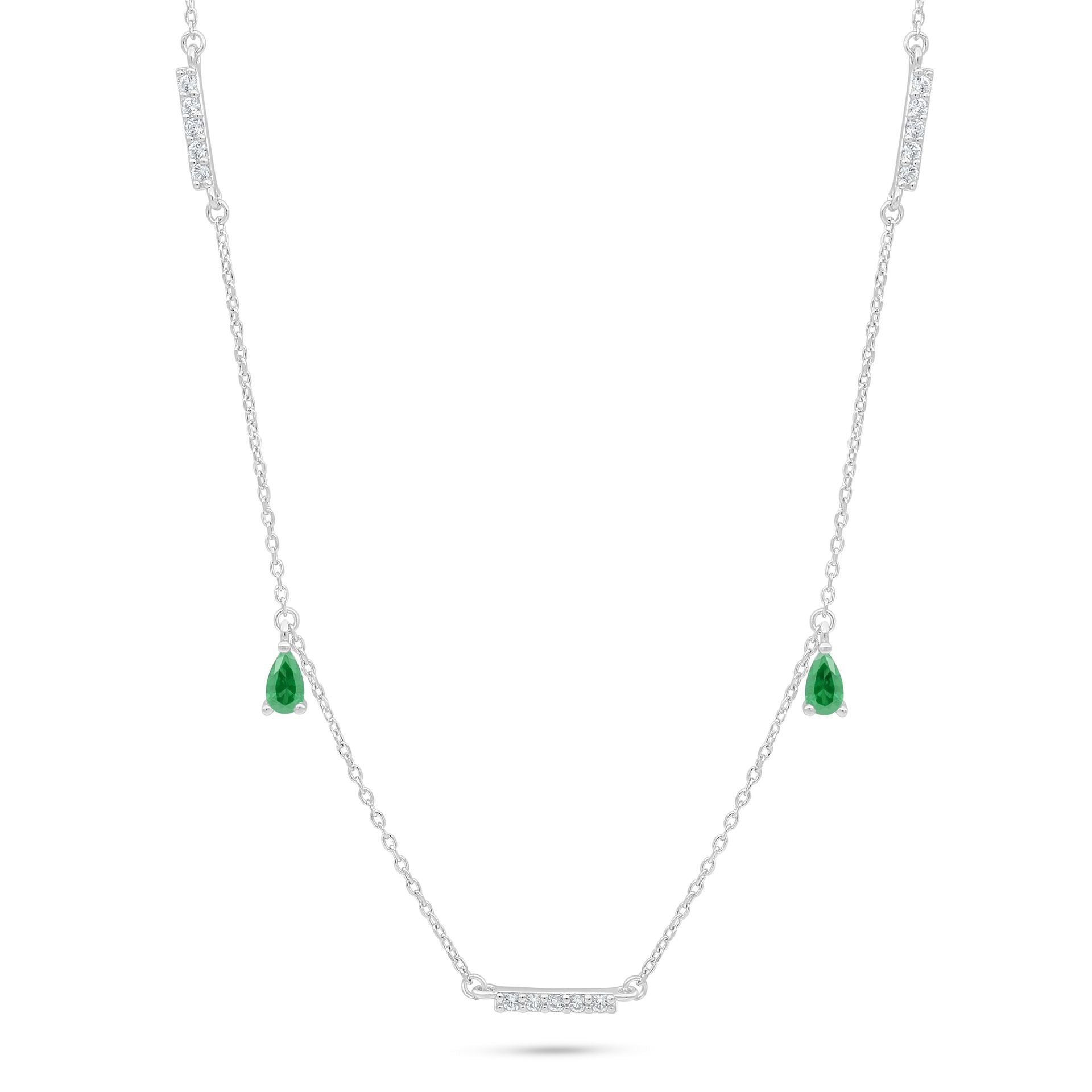 عقد من الفضة الخالصة عيار 925 مطلي روديوم مرصع زركون زمردي و فص ابيض