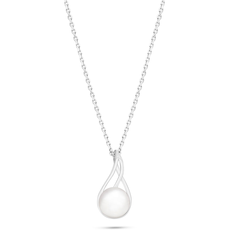 عقد من الفضة الخالصة عيار 925 مطلي روديوم مرصع لولو ابيض طبيعي