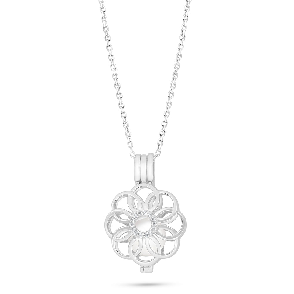 عقد من الفضة الخالصة عيار 925 مطلي روديوم مرصع لولو ابيض طبيعي و فص ابيض