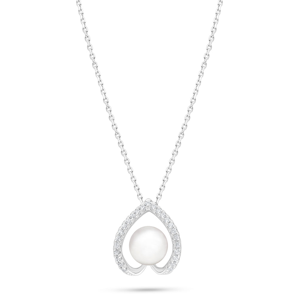 عقد من الفضة الخالصة عيار 925 مطلي روديوم مرصع لولو ابيض طبيعي و فص ابيض