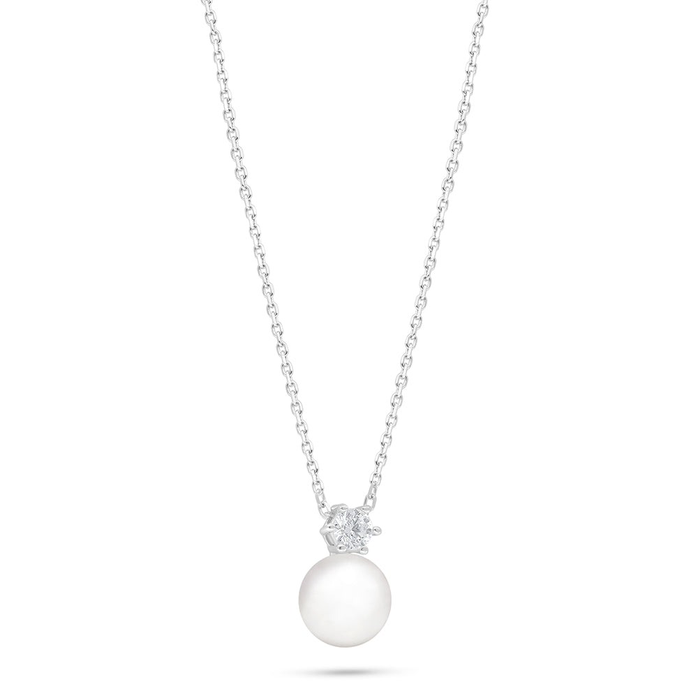 عقد من الفضة الخالصة عيار 925 مطلي روديوم مرصع لولو ابيض طبيعي و فص ابيض