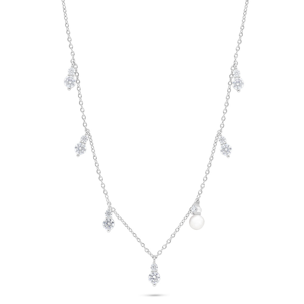 عقد من الفضة الخالصة عيار 925 مطلي روديوم مرصع لولو ابيض طبيعي و فص ابيض