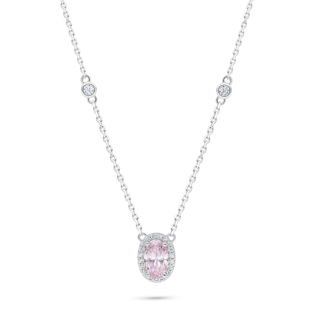 عقد من الفضة الخالصة عيار 925 مطلي روديوم مرصع زركون بنك و فص ابيض