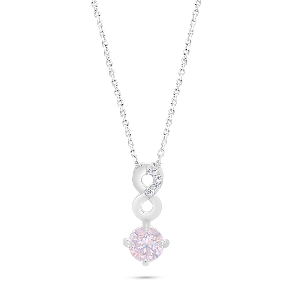 عقد من الفضة الخالصة عيار 925 مطلي روديوم مرصع زركون بنك و فص ابيض