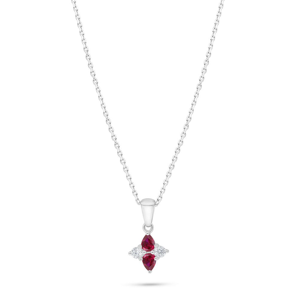 عقد من الفضة الخالصة عيار 925 مطلي روديوم مرصع ياقوت كروندوم و فص ابيض