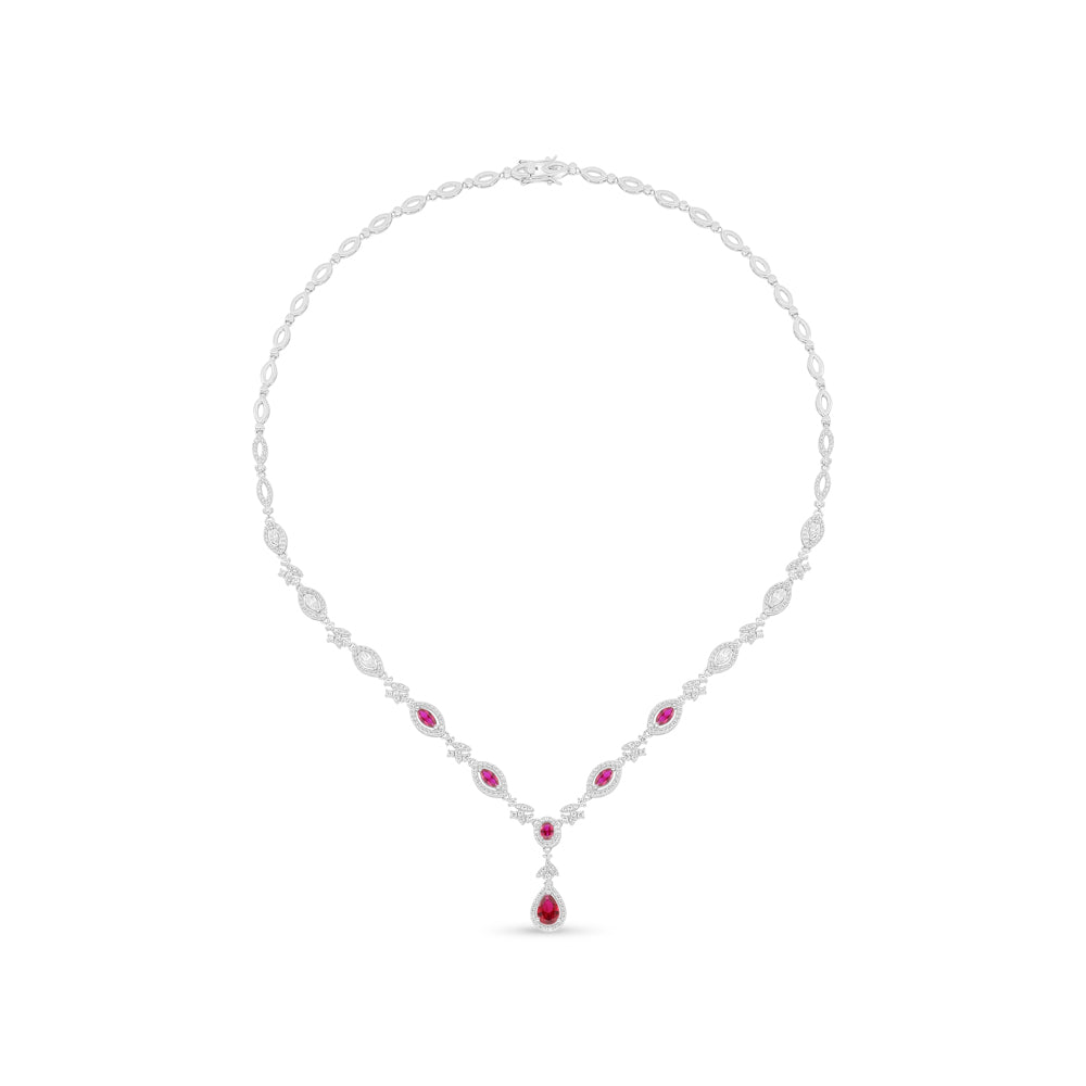 عقد من الفضة الخالصة عيار 925 مطلي روديوم مرصع ياقوت كروندوم و فص ابيض