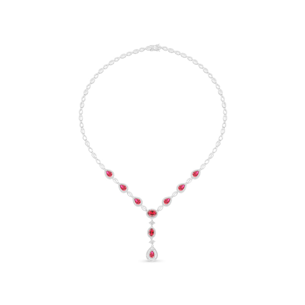 عقد من الفضة الخالصة عيار 925 مطلي روديوم مرصع ياقوت كروندوم و فص ابيض