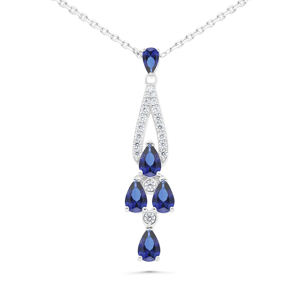 عقد من الفضة الخالصة عيار 925 مطلي روديوم مرصع زفير كروندوم و فص ابيض