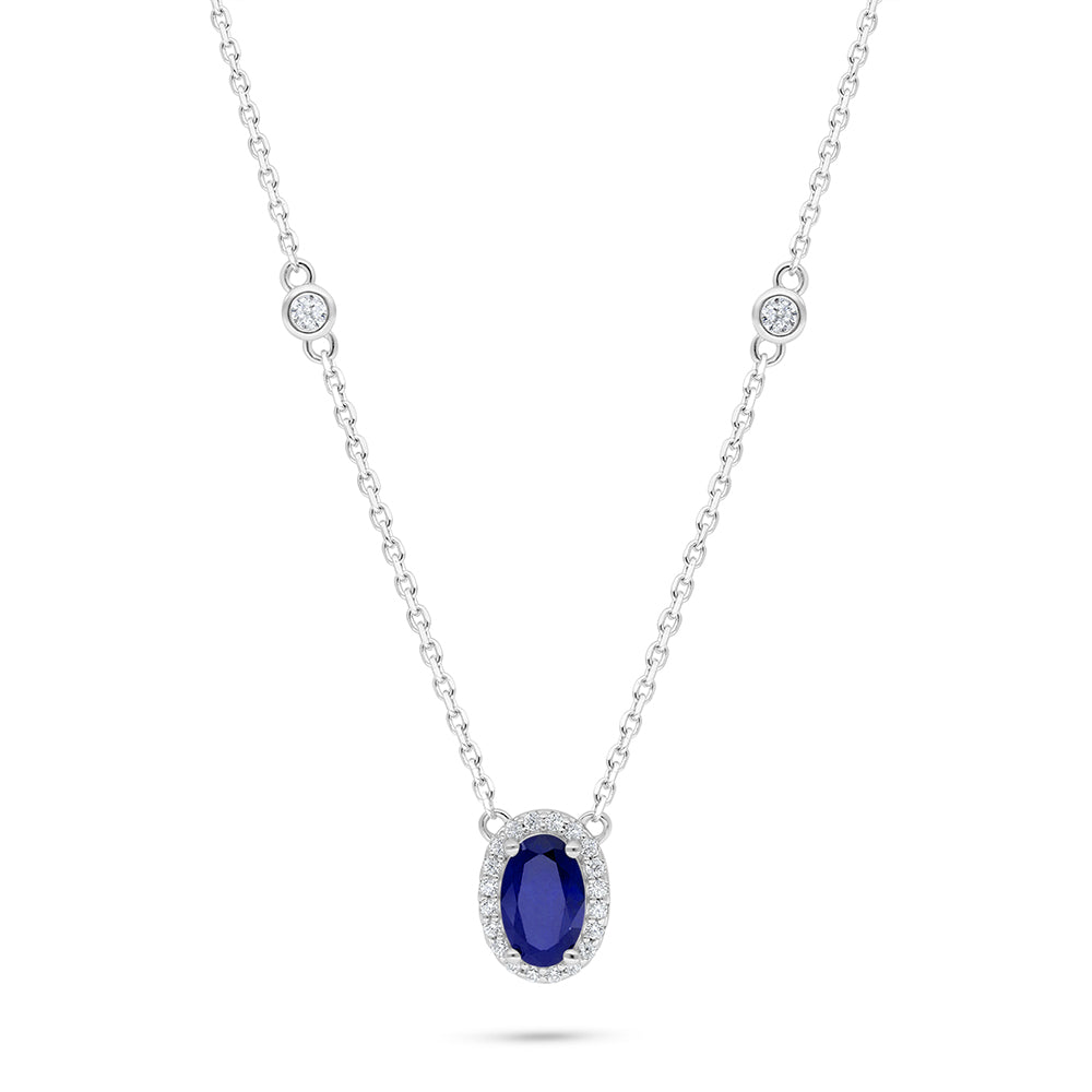 عقد من الفضة الخالصة عيار 925 مطلي روديوم مرصع زفير كروندوم و فص ابيض