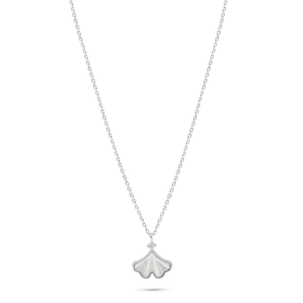 عقد من الفضة الخالصة عيار 925 مطلي روديوم مرصع صدف ابيض و فص ابيض