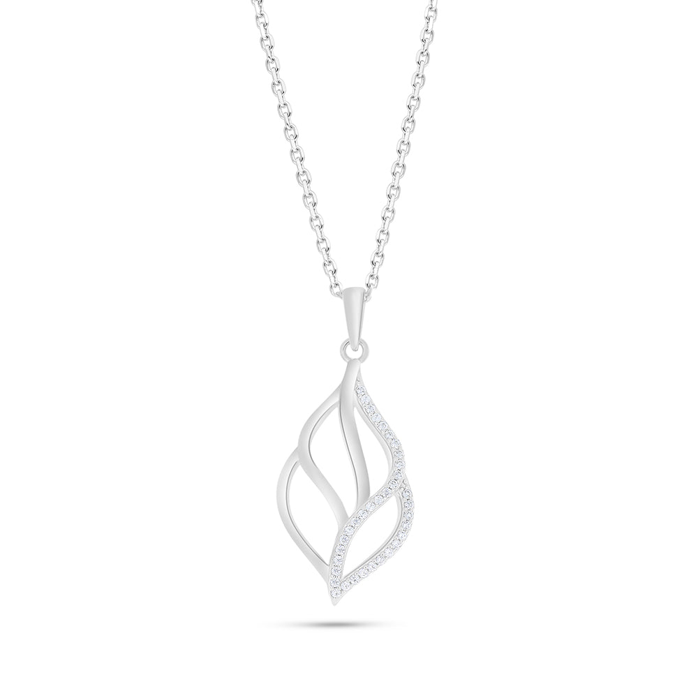 عقد من الفضة الخالصة عيار 925 مطلي روديوم مرصع فص ابيض