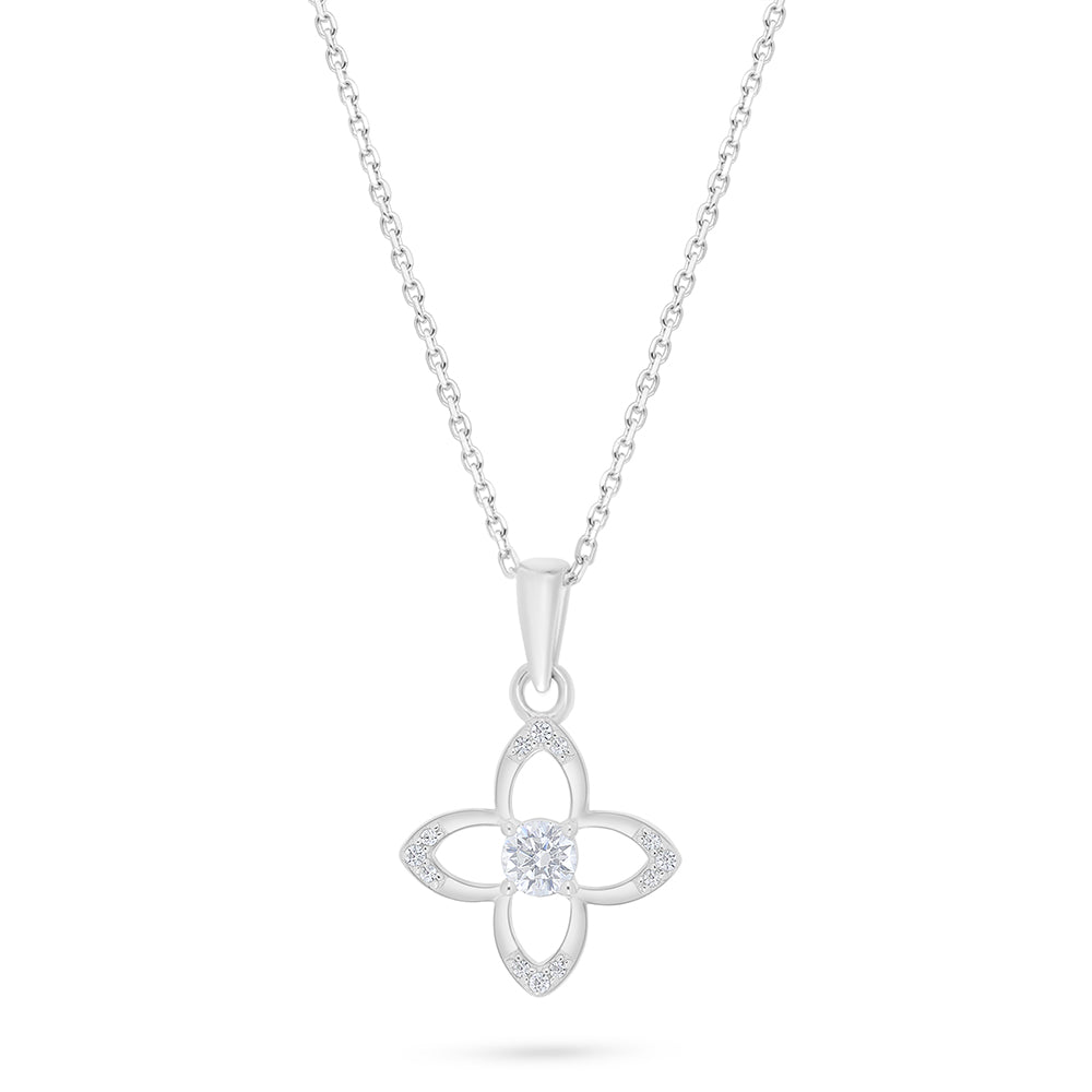 عقد من الفضة الخالصة عيار 925 مطلي روديوم مرصع فص ابيض
