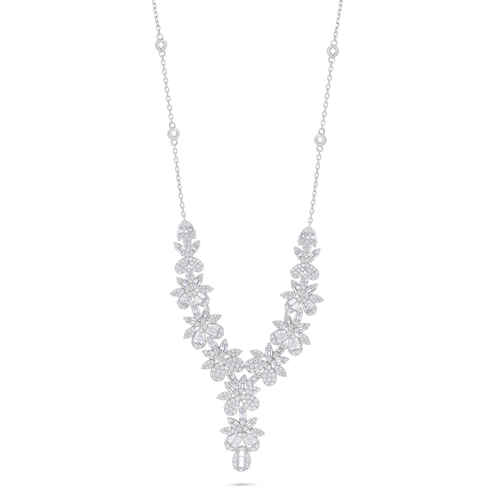 عقد من الفضة الخالصة عيار 925 مطلي روديوم مرصع فص ابيض
