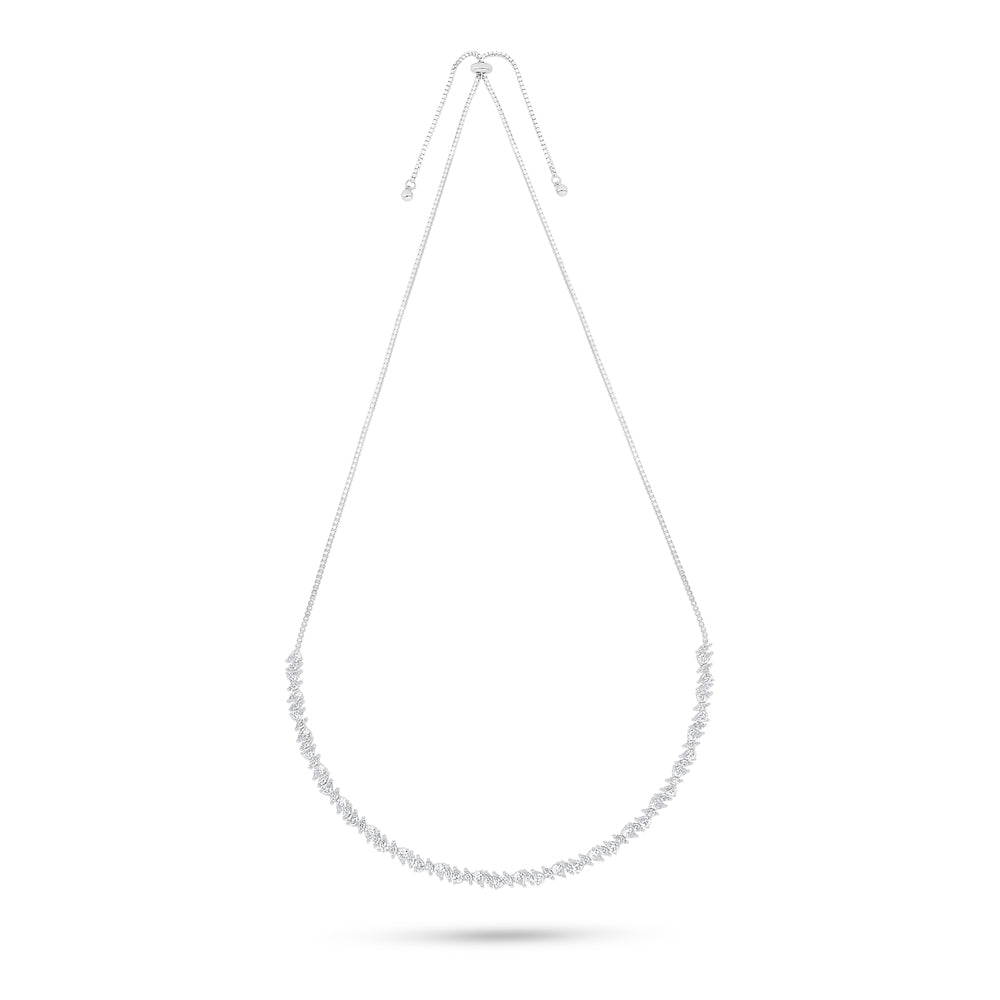 عقد من الفضة الخالصة عيار 925 مطلي روديوم مرصع فص ابيض
