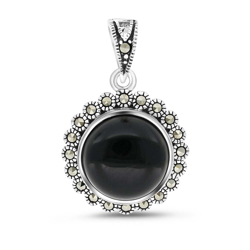 تعليقة من الفضة الخالصة عيار 925 مرصعة عقيق اسود طبيعي و ماركسايت