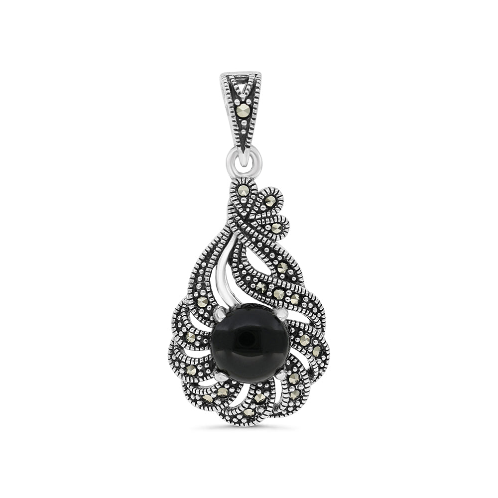 قلادة من الفضة الخالصة عيار 925 مرصعة احجار اونكس الطبيعي و ماركسايت