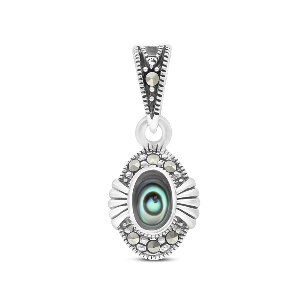 قلادة من الفضة الخالصة عيار 925 مرصعه احجار صدف استرالي طبيعي و ماركسايت