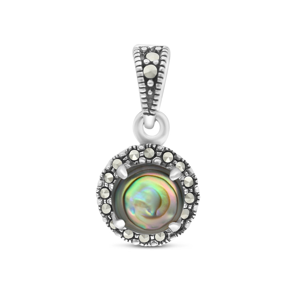 قلادة من الفضة الخالصة عيار 925 مرصعه احجار صدف استرالي طبيعي و ماركسايت