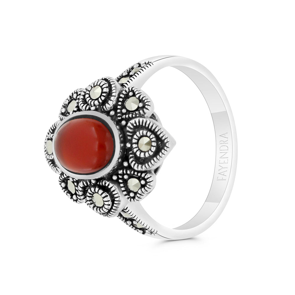 خاتم من الفضة الخالصة عيار 925 مرصع احجار عقيق طبيعي و ماركسايت