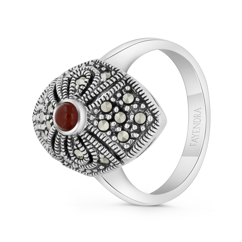 خاتم من الفضة الخالصة عيار 925 مرصع احجار عقيق طبيعي و ماركسايت