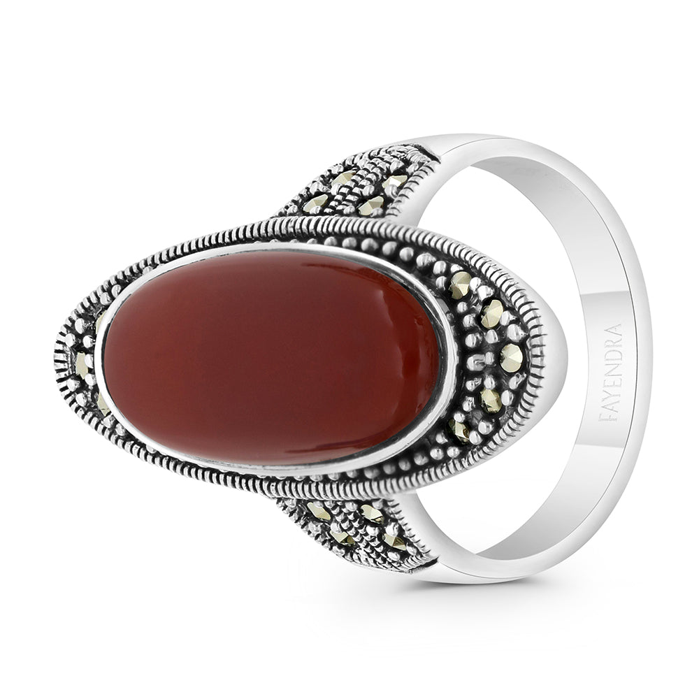 خاتم من الفضة الخالصة عيار 925 مرصع احجار عقيق طبيعي و ماركسايت