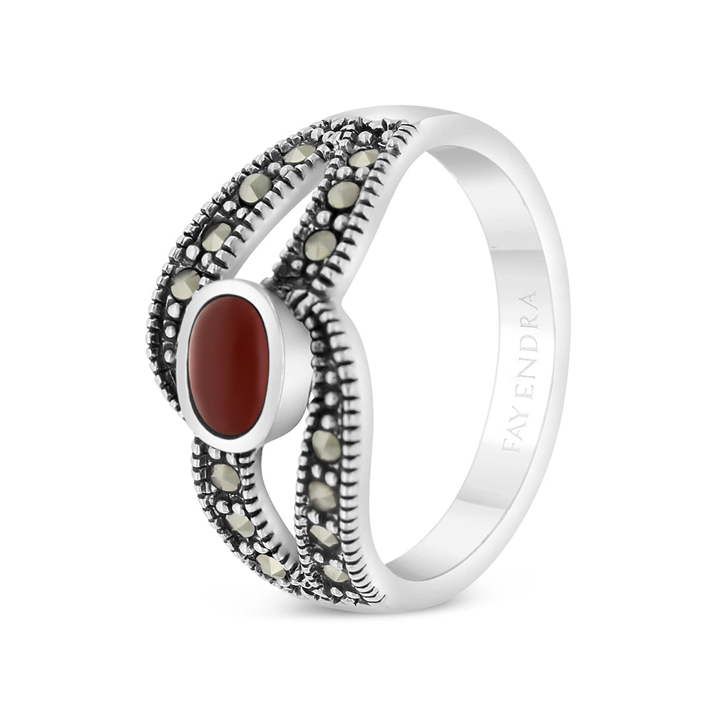 خاتم من الفضة الخالصة عيار 925 مرصع احجار عقيق طبيعي و ماركسايت