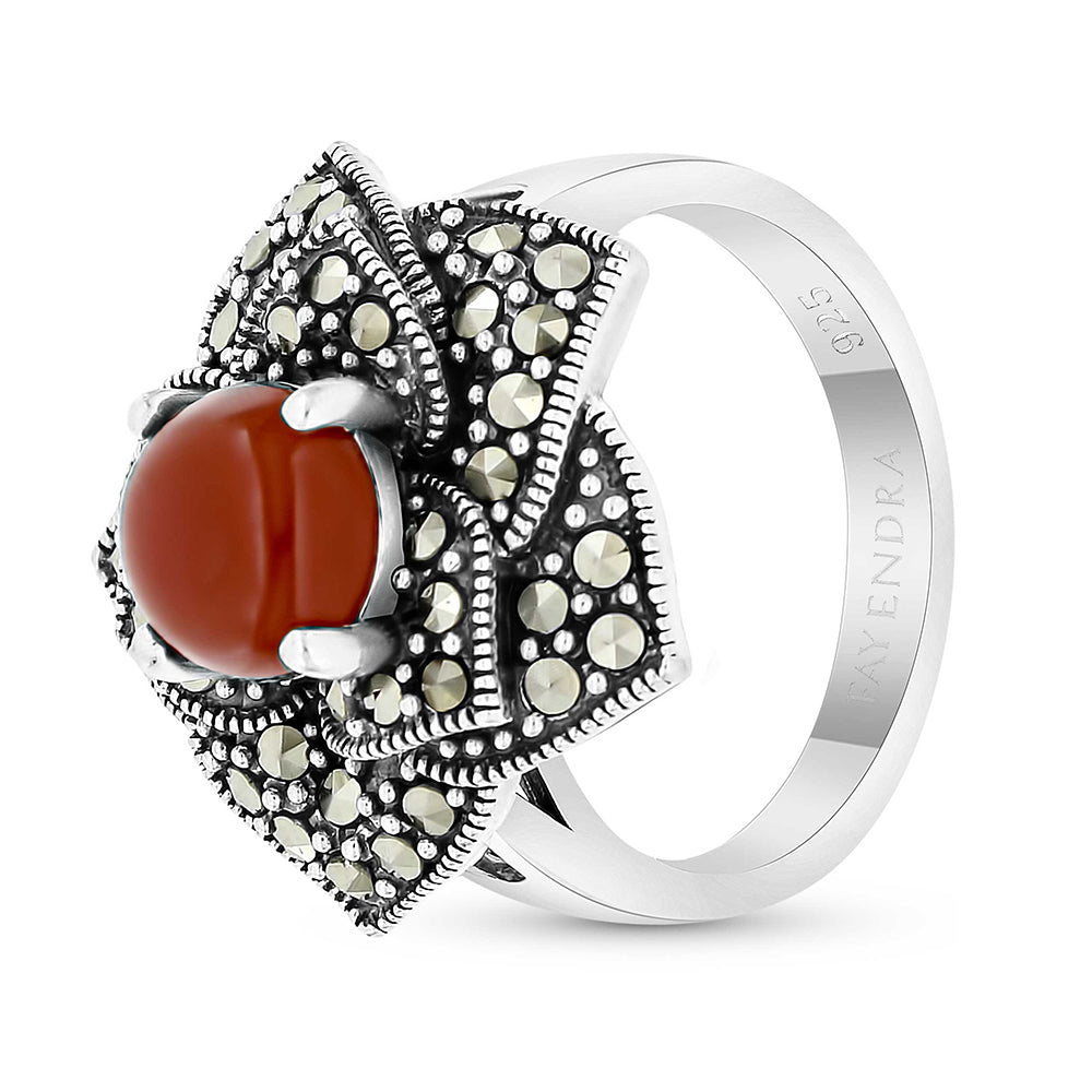 خاتم من الفضة الخالصة عيار 925 مرصع احجار عقيق طبيعي و ماركسايت