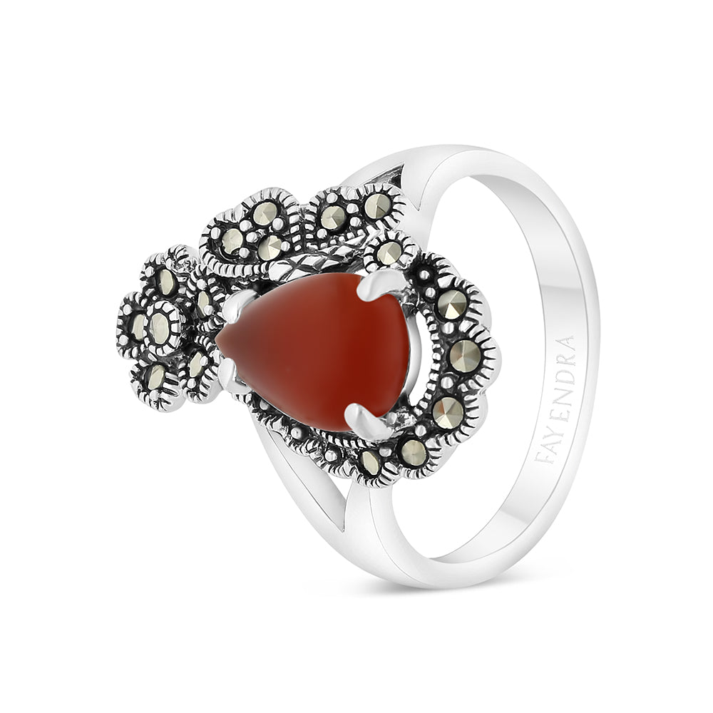 خاتم من الفضة الخالصة عيار 925 مرصع احجار عقيق طبيعي و ماركسايت