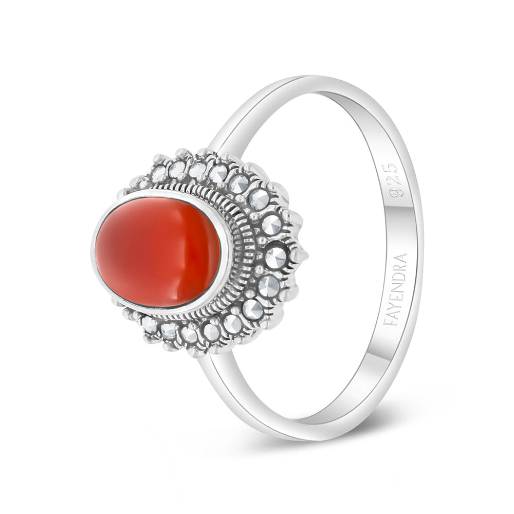 خاتم من الفضة الخالصة عيار 925 مرصع احجار عقيق طبيعي و ماركسايت